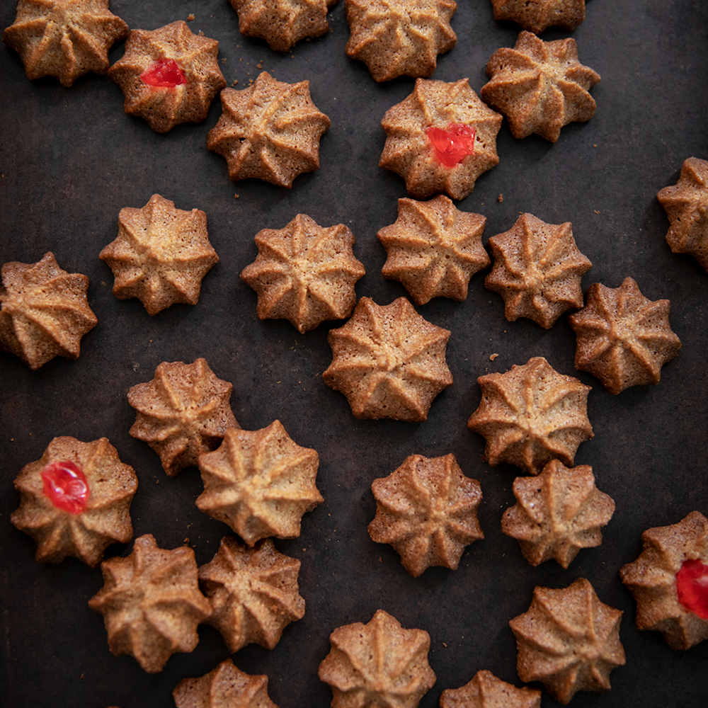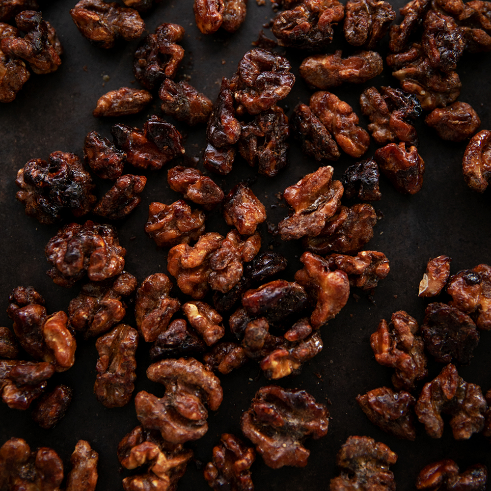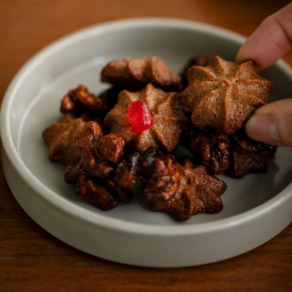 香ばしくキャラメリゼしたクルミと、クルミを生地に練り込んだやさしい甘さの風味豊かなビスケット。
