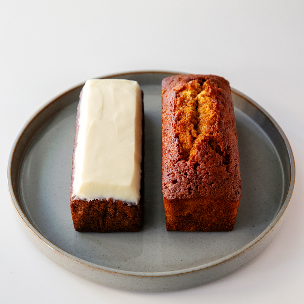 店頭でも人気のキャロットケーキと塩キャラメルパウンドケーキをセットでご用意しました。
