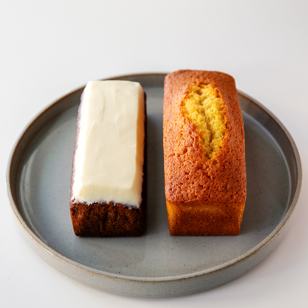 店頭でも人気のキャロットケーキとレモンパウンドケーキをセットでご用意しました。